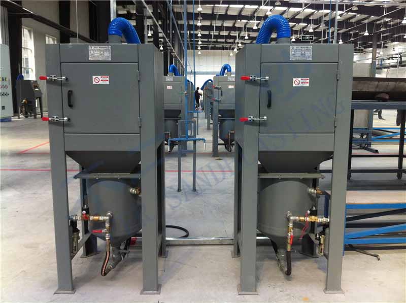 加壓型噴砂機工作原理本設備是以磨料為工作介質,以壓縮空氣為動力,磨料和壓縮空氣在加壓罐內加壓后,再 由砂閥處加速后,將磨料引射到噴槍內噴射到工件表面,達到預期的噴砂加工目的。