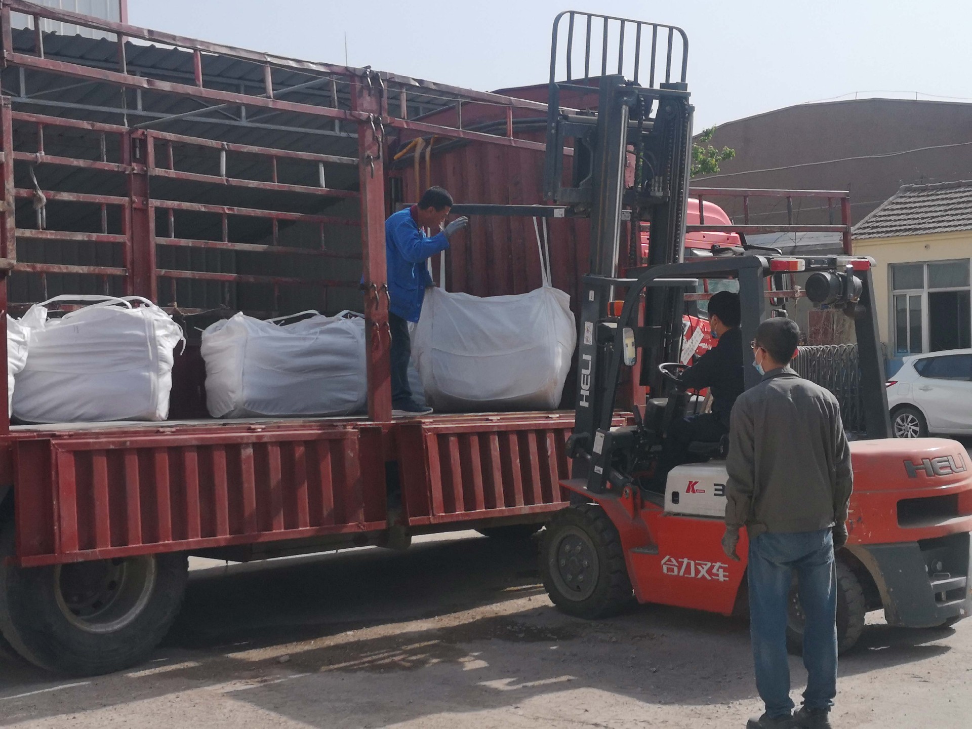 10噸的白剛玉及其它零部件裝到貨車上,