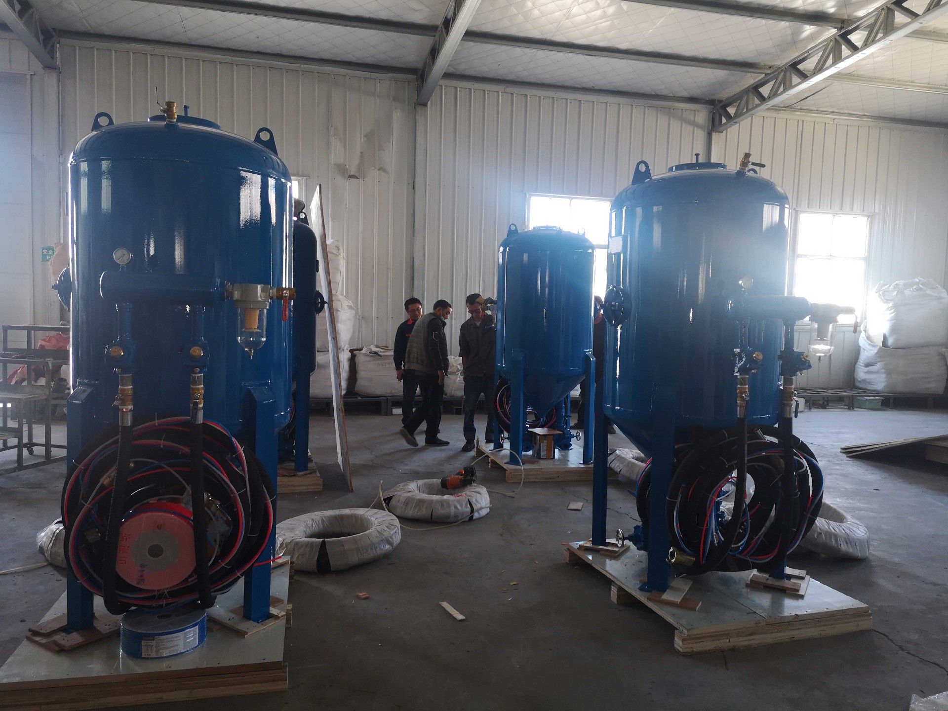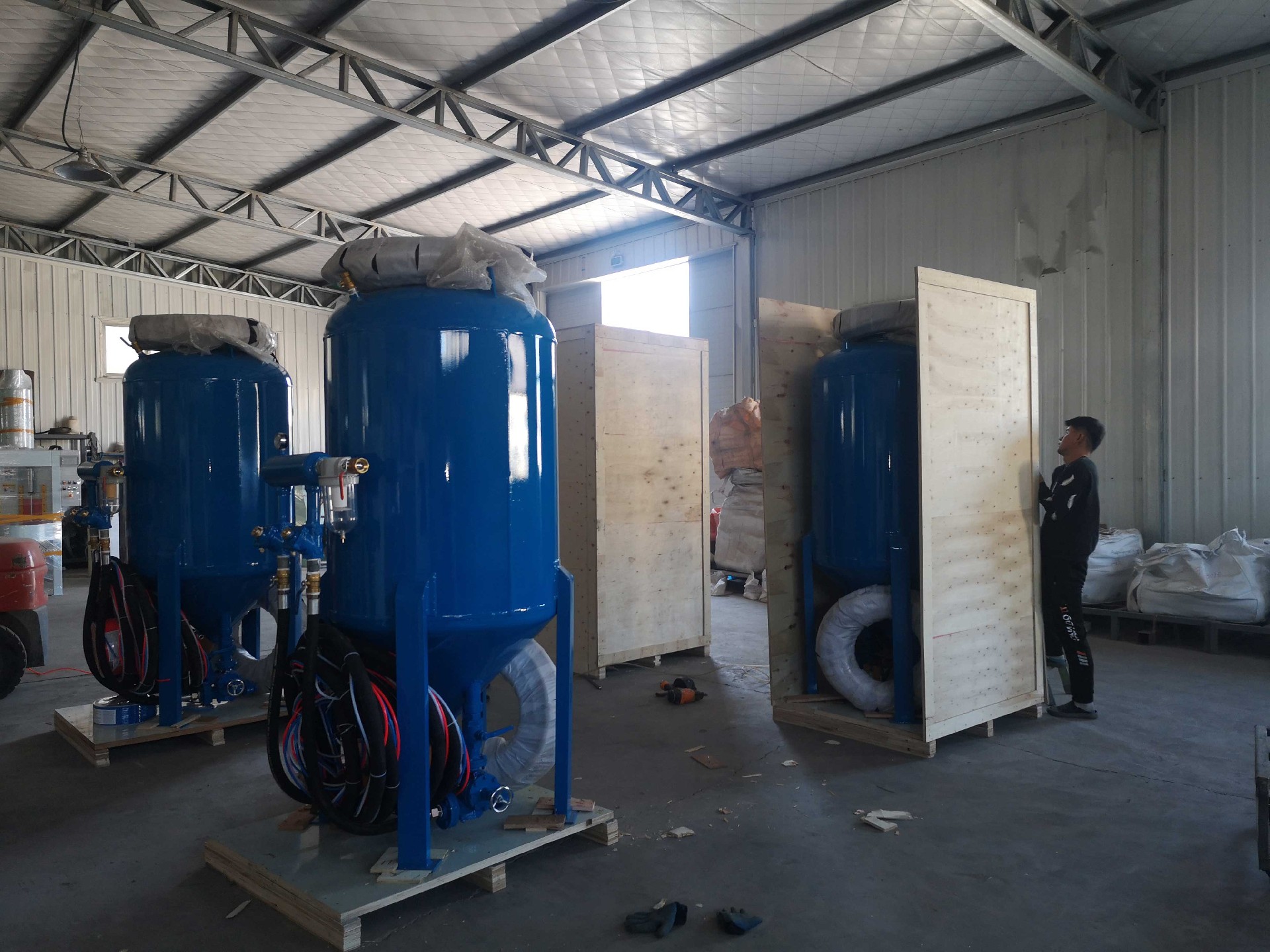 2022年05月05日下午16點,青島不二噴砂科技有限公司迎來“五一國際勞動節”五天小長假后的大豐收,本次將公司生產的4臺噴砂設備經過長途跋涉運往國外,為企業后續工作的正常開展打響了第一炮,給我公司生產經營工作的正常運轉奠定基礎。